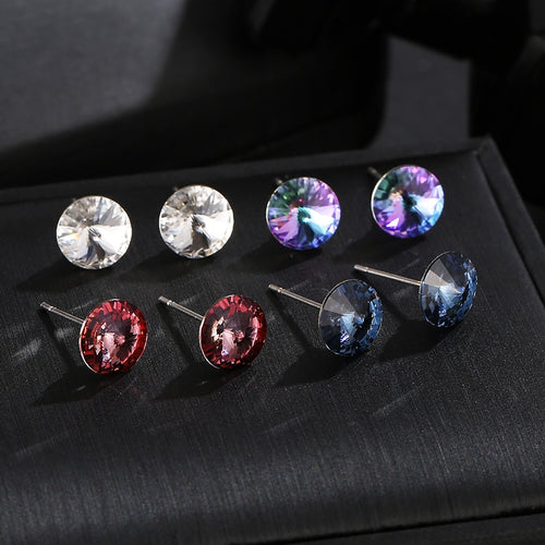 Baffin Classic Round Silver Color Stud Earrings Crystals From Swarovski Piercing