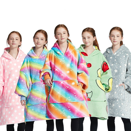 Kids Unisex Winter Warm Double Layers Sherpa Fleece TV Pocket Hoodies Blanket Hoodie Snuggle with Sleeves